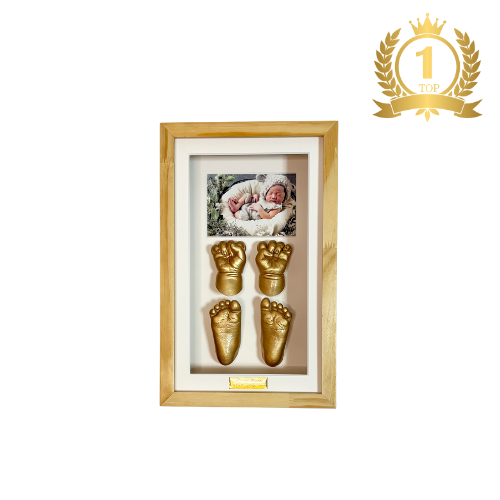 内容:赤ちゃんやご兄弟の「手」や「足」あわせて【4本分】を型取りし、写真なしでシンプルに額装する特別なセットです。(ネームプレート付きます。)